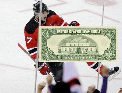 UPDATE: Well, no great shock that Scott Burnside was wrong. The official numbers are 17 years for a cool $102 million. At six million a pop, I’d say Kovalchuk took a huge discount just so he could finish the rest of his career in the Garden State. Maybe he wanted to upstage buddy Alex Ovechkin. But there’s no way he’s worth as much as Ovi and that played out with many teams not even bothering. Is Ilya one of the best pure snipers in the game? Absolutely. Can he put up points in a hurry? No doubt. But what other team was seriously going to give him that much security? Not only did Lou once again score big here but got the exciting Russian at a bargain, which means he should be able to re-sign top priority Zach Parise next summer. Only the Devils could pull something like this off. That’s what you get when the GM knows too many loopholes in what’s become a flawed system. So much for the cap resolving everything.