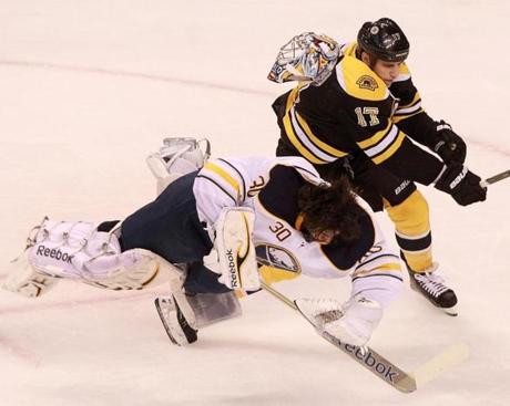 Milan Lucic took a ‘run’ at Ryan Miller on a breakaway attempt in the 1st period, and while Miller stayed in the game, you can tell something just wasn’t right. Miller did make 19 saves in the 2nd, but the Bruins scored the next 3 goals of the game in a 22 shot onslaught in the 2nd period. And to start the 3rd period, enter in Jhonas Enroth, who gave up another three goals and the Bruins routed the Sabres 6-2.