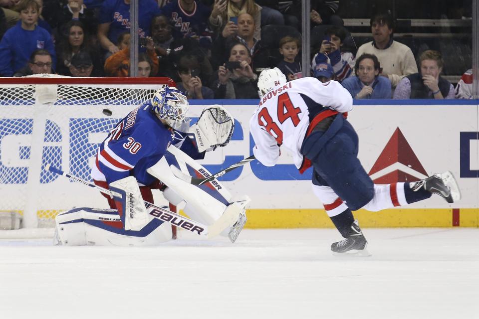 The Rangers were outscored 3-0 and outshot 17-10 in a dismal second. The whole period was a blur. While I was celebrating my birthday and reuniting with some of our close friends, the Blueshirts did zilch. Oh. They may have been credited with 10 shots on Philipp Grubauer. But I can’t remember the rookie having to make a single big save. Meanwhile, the Caps continued an all out assault on Lundqvist. That included a bogus Mikhail Grabovski successful penalty shot that made it 3-0 at 18:26. I still have no idea how they awarded him one. On the heels of some missed calls Saturday, it made no sense. I didn’t even realize it was a penalty shot until I was in the restroom and heard the crowd chanting, “Hen-rik, Hen-rik!” At that point, I knew he would score and that was confirmed by the collective groans. Apparently, he froze him with a rare slap shot top shelf. In no shape or form am I pinning this on Lundqvist. But you expect him to stop that.