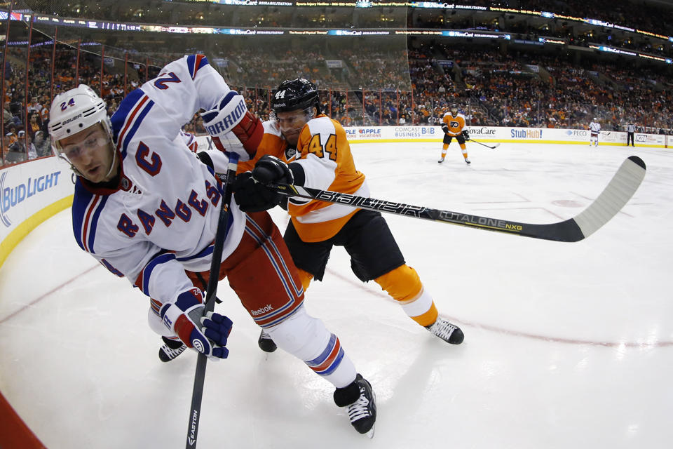 If there was a notable difference, it was the Flyers’ penchant for playing physical. They hit, hit and hit some more. The biggest highlight being a Zac Rinaldo clean shoulder on a bending Daniel Carcillo, who escaped with his head intact. At first glance, I thought he left his feet. But it was just a great open ice hit indicative of how badly the guys in those ugly orange jerseys wanted it. They needed it with the Devils, Caps and Blue Jackets all winning. That also means the Rangers have no margin for error with an angry Boston team visiting MSG tomorrow following back-to-back losses.