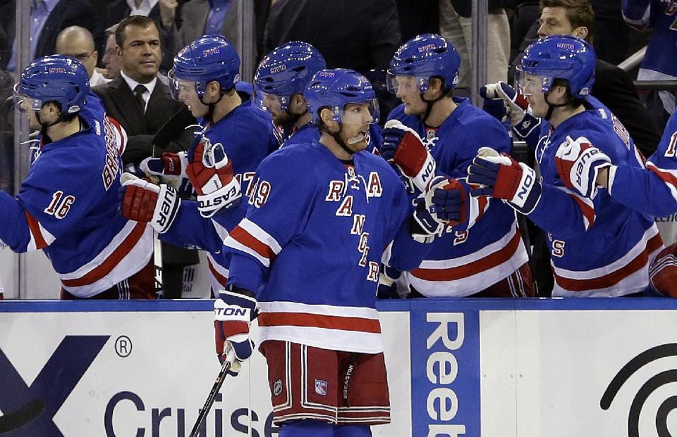 Derek Stepan also added a goal and assist to continue his strong second half. Benoit Pouliot scored his 14th on what’s been the Rangers’ most effective line. No surprise that it features Zuccarello, who added to his team best scoring total with his team high 39th assist on a beautiful set up for Pouliot. Not to be outdone, Henrik Lundqvist was sharp throughout making 27 saves. That included nine big ones in the first when defense was optional. He made 11 more in a better second.