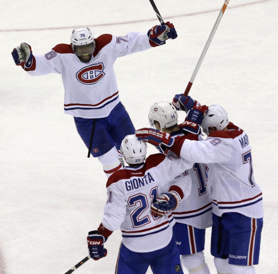 A joyous P.K. Subban thanks David Desharnais and Brian Gionta for bailing him out.