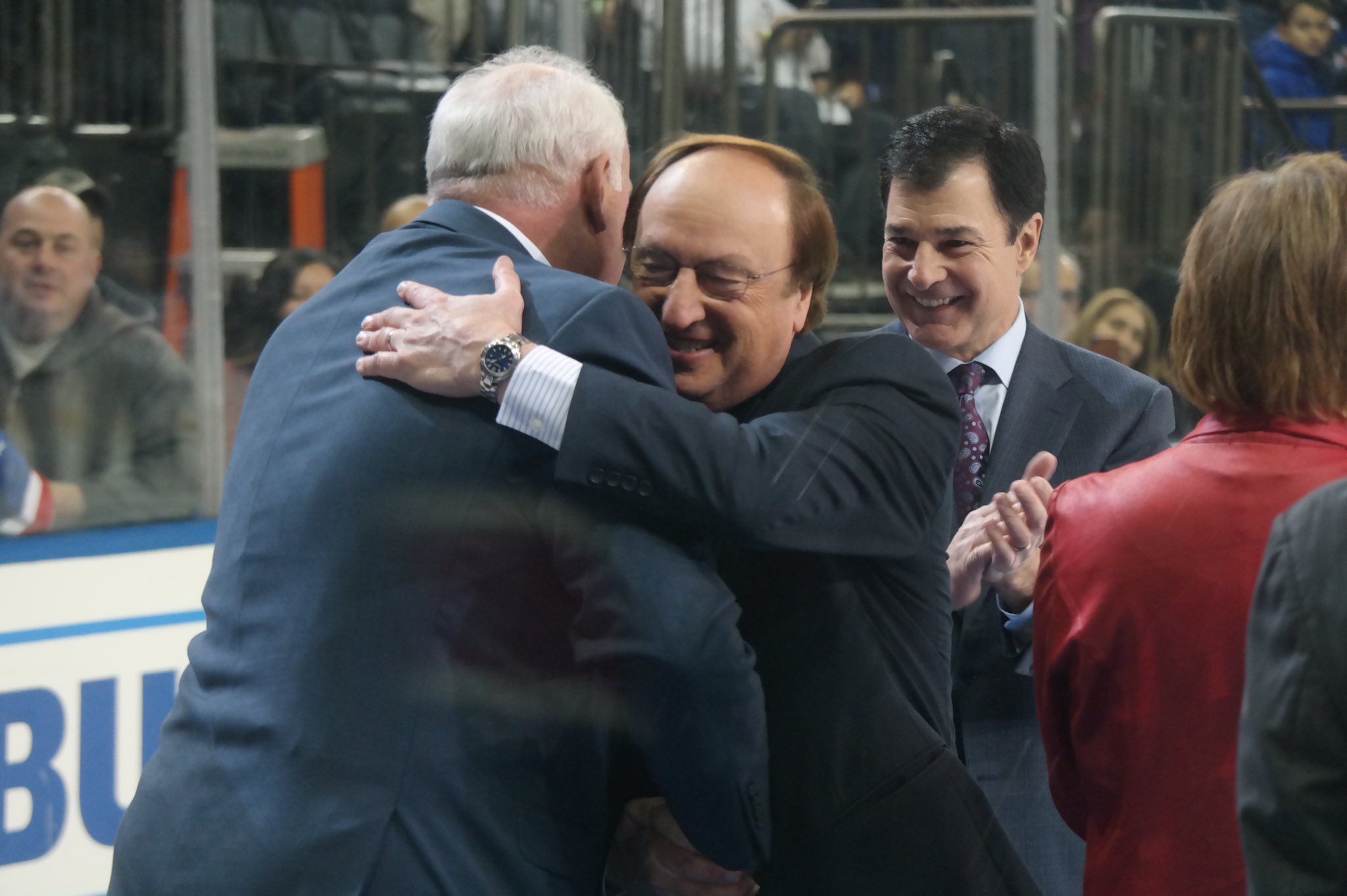 –Sam Rosen was properly recognized by The Garden before the game for his induction into the Hockey Hall of Fame. He deserved the Foster Hewitt Award and it definitely will last a lifetime. It was nice to see old partner John Davidson on the ice for the pregame ceremony along with Joe Micheletti. Sam and JD were the best in the game for so long. I give Micheletti a lot of crap. But he’s done well in his 11 years.