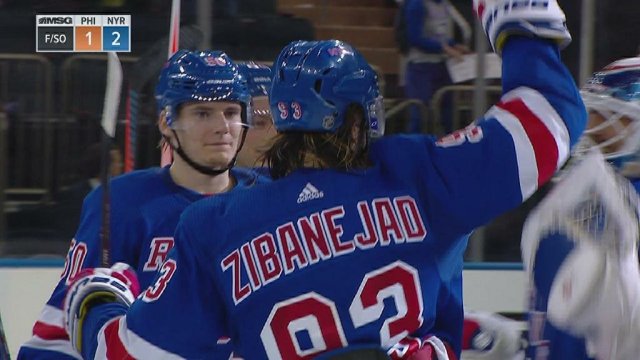 Mika Zibanejad got the only goal in the shootout. Following a strong pad stop from Lundqvist on impressive Flyers rookie Joel Farabee, out came number 93. He flew in on Carter Hart and went to a nice deke, backhand top shelf inside the crossbar in the bottom of the third.