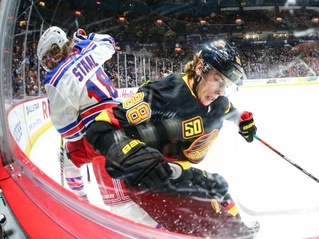 Despite outplaying their old Western rival they beat in ’94 to win the Stanley Cup on Retro 90’s Night at Vancouver, the Rangers could only muster one goal on 37 shots against Jacob Markstrom. The Canucks starting goalie who was elected to his first All-Star Game, was the difference throughout finishing with 36 saves. He went 2-0 versus Henrik Lundqvist and Alexandar Georgiev by stopping 74 of 77 shots in a clean season series sweep. He improved to 6-2-1 for his career versus the Rangers.