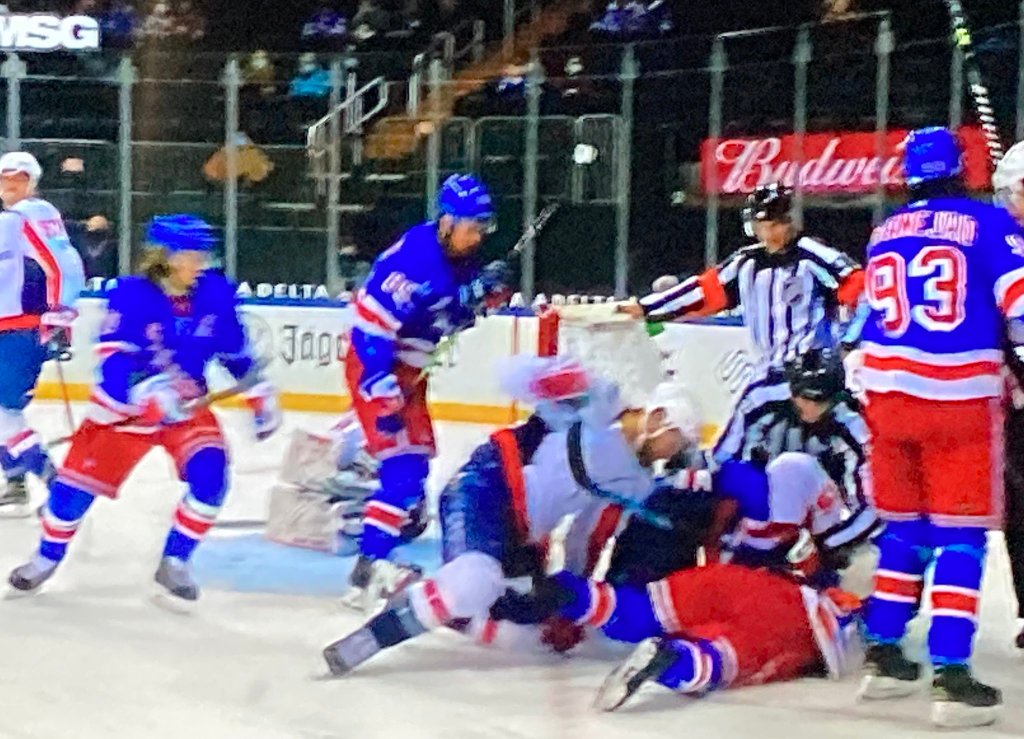 Most humiliating was that the Rangers had no response to Wilson in a pathetic third that saw the Caps outscore them 3-0. Remarkably, it was the Capitals that scored four unanswered including a Wilson empty netter that was a fitting way to end an ugly game. Wilson got the last laugh. Who cared if he absorbed a couple of clean checks from Kevin Rooney and Colin Blackwell. Like that’s going to bother him. He picked up a goal and assist along with 16 penalty minutes including the chaotic scene that boiled over in Rangerstown. It was downright sad.